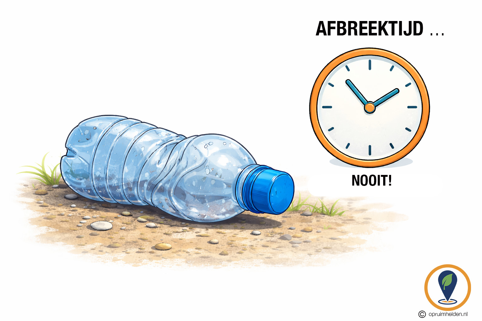 Een plastic flesje kan bijvoorbeeld 450 jaar in de natuur blijven!