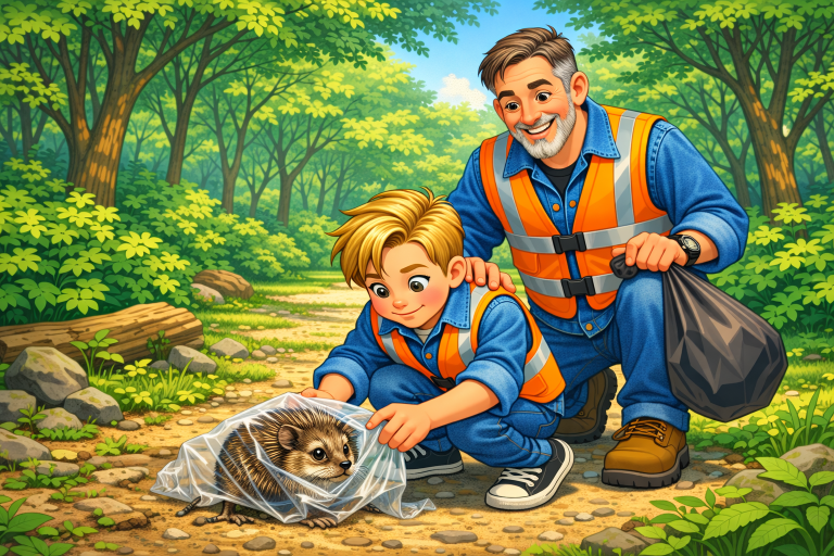 De bomen ritselden zachtjes in de wind en ergens hoorde je vogels zingen. In Zane zijn hand een vuilniszak. Voor de zekerheid. Want je weet maar nooit wat je tegenkomt.